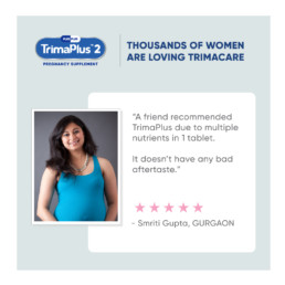 Indian Council of Medical Research recommends a daily intake of 35 mg Iron, 500 mg Folic Acid and 500 mg Calcium. Therefore, TrimacareTM adheres to their standards and specific requirements. Additionally, TrimacareTM provides 20+ nutrients like Iodine, Vitamin D, Omega 3 Fatty Acids, Vitamin C, Zinc etc., which are essential for pregnancy. Inform your Doctor/Healthcare professional before you start consuming TrimacareTM.