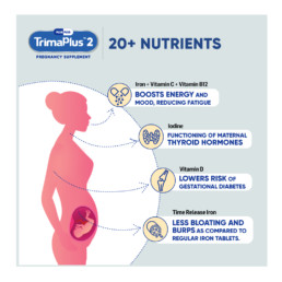 TrimacareTM 2 already contains 20+ essential micronutrients along with 60 mg of iron and 500 mg of calcium that Indian doctors must prescribe during the 2nd trimester of pregnancy. As a result, it is your one-stop shop and does away with the necessity of taking multiple prenatal tablets like Iron, calcium, DHA, Vitamin b12, Iodine, Omega3 and much more while expecting.